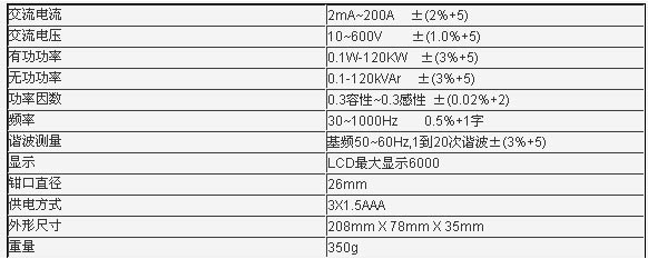 MS2208諧波微功率表PREFIX = O 測量交流電壓、交流電流、交流電壓峰值、交流電流峰值、有功功率、